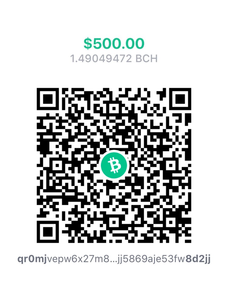 bitcoincash:qr0mjvepw6x27m877qf8kdkzjj5869aje53fw8d2jj?amount=1.49049472